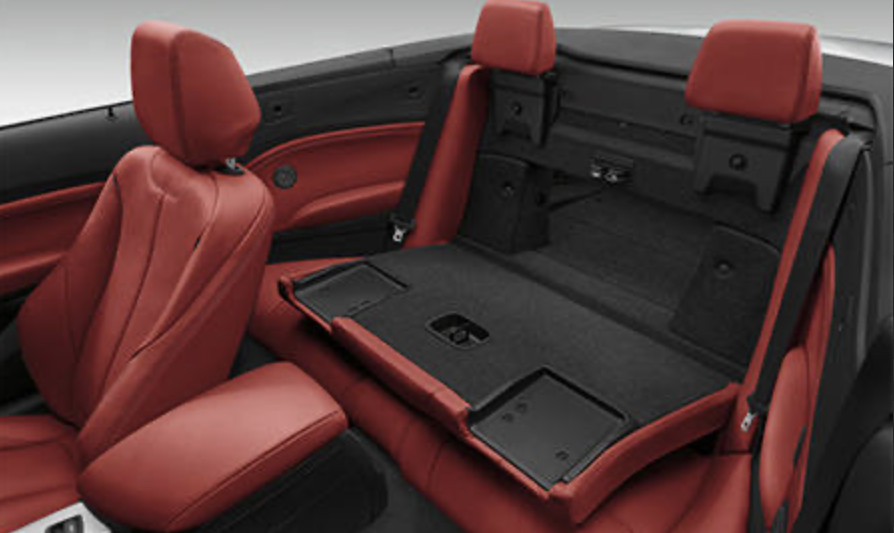 では、なぜこれだけコンパクトに抑えながら、FRオープンを実現できたのか、特に同じBMWの3シリーズ、4シリーズのカブリオレと比較してみると、大きく2点の違いに気づきます。一つ目は、屋根を布製の幌「ソフトトップ」としたこと。これで格納スペースは大幅に圧縮でき、後部座席の確保につながります。しかもこのルーフは約20秒で開閉できます。二つ目は、直列4気筒2,000ccターボエンジンを採用「ダウンサイジングターボ」としたことです。エンジンルームの中を大きく占有するエンジンを小型化し(3・4シリーズは直列6気筒3,000ccターボエンジン)ボンネットを小さくすることができたことです。排気量は小さくなれども、他メーカーでも取り入れている「ダウンサイジングターボ」の特徴である、低回転からターボを効かせることにより滑らかなムラのない加速を実現し、大排気量エンジンに近いフィーリングを発揮させています。8速ATの性能も相まって、燃費は(ターボ車ならではのアクセルワークや走行環境によるブレは想定されますが、)JC08モードで15.8km/lと、レジャー使いには十分な性能と言えるでしょう。