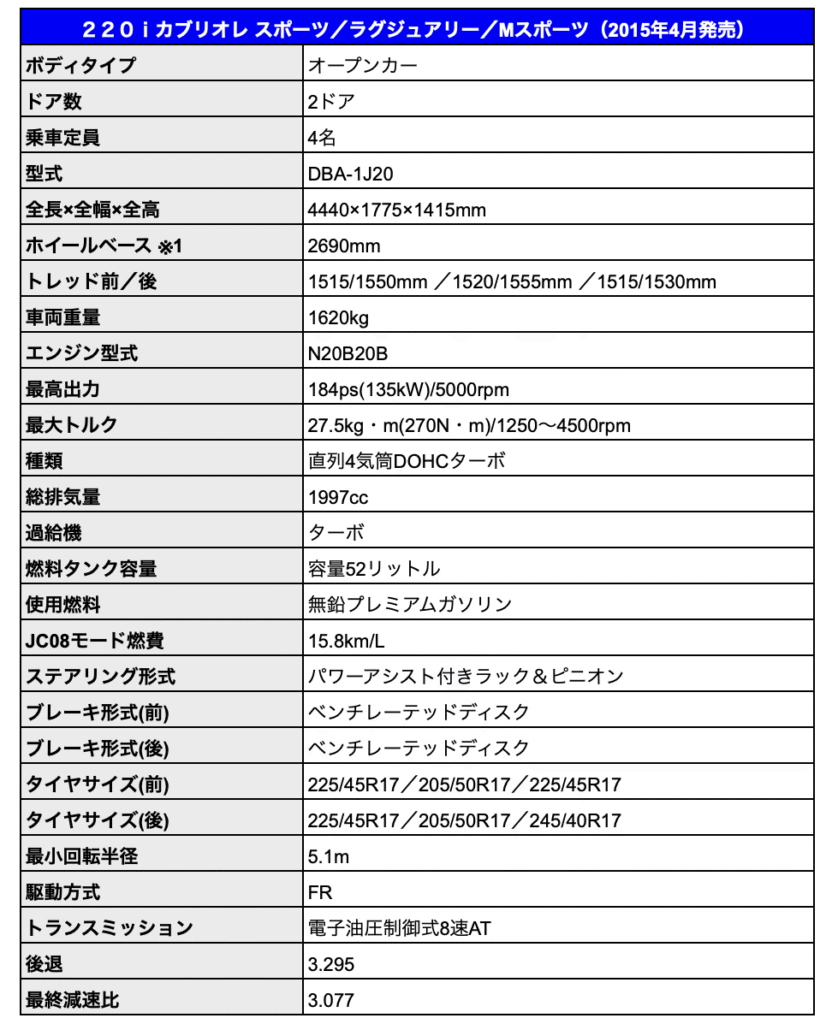 この2シリーズカブリオレのグレードはシンプルに3パターンで、ベーシックな「スポーツ」とスポーティーな中にも高級感が漂う「ラグジュアリー」、専用エアロや内装のカーボン素材などがBMWらしさを彷彿させる「Mスポーツ」。いずれもボディサイズやエンジン性能は同一で、タイヤサイズに多少の差はあれど、中古車では純正オプションのアルミホイールなどを装着している車両も多く、”性能は同じ”と理解して差し支えないものと思います。それぞれのコンセプトと好みで選ぶのがいいと思います。